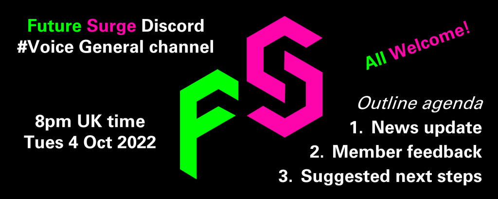 That’s the subject of what will be the second audio (voice) meeting on the Future Surge Discord, which will be taking place from 8pm UK time on Tuesday 4th October.