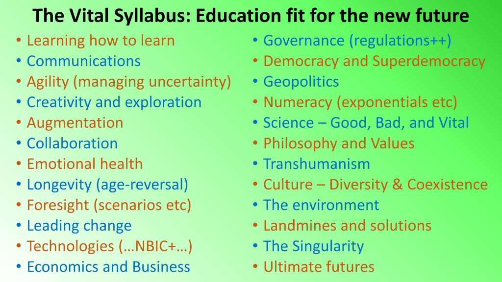 During Sprint 1, the redesign of the Vital Syllabus site proceeded, with materials being moved there from their original home on the London Futurists website. The content has also been restructured: